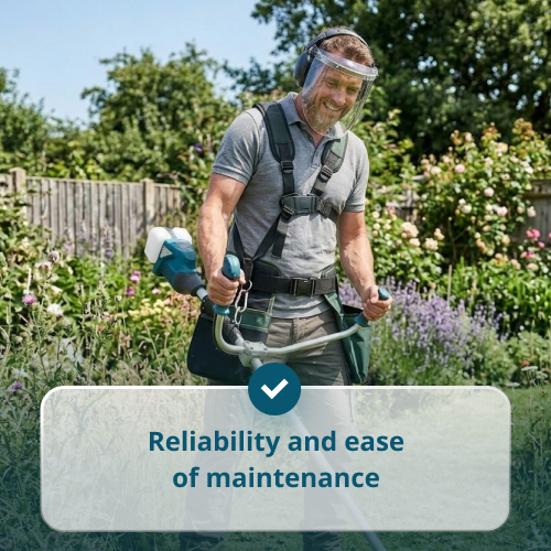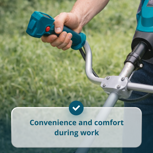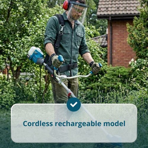 The cordless model provides full freedom of movement without cables and operates quietly and without exhaust gases.