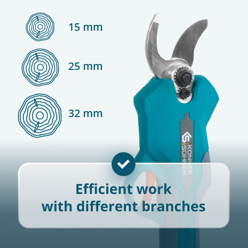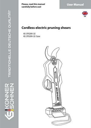 | Includes | Cordless Electric Pruning Shears, Sleeve wrench, Wrench, Blade protective cover, Sharpening stone, Oil bottle, 20V Battery Charger KS C24A, 20V 2Ah Lithium Battery, User manual |