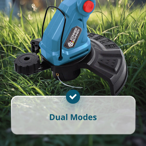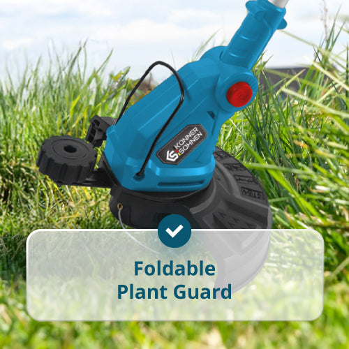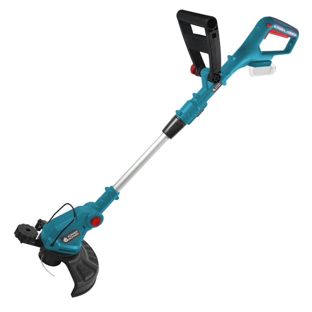 Vezeték nélküli trimmer a német Könner & Söhnen® márkától – egy praktikus és erőteljes eszköz a gyep karbantartásához. A gumírozott fogantyú kényelmes fogást biztosít, míg a forgatható fogantyú könnyen állítható. A klipszes teleszkópos szár gyorsan állítható, lehetővé téve a hosszúság és a vágási módok változtatását. A Tap&Go fej automatikusan kinyújtja a damilt, és egy további fej műanyag pengékkel hatékony a sűrű növényzethez. A támasztókerék javítja a szegélyvágás irányítását. Az állítható motorház optimális dőlésszöget tesz lehetővé. Az összecsukható növényvédő megóvja a termesztett növényeket. Könnyű, mobil és egyszerűen használható.