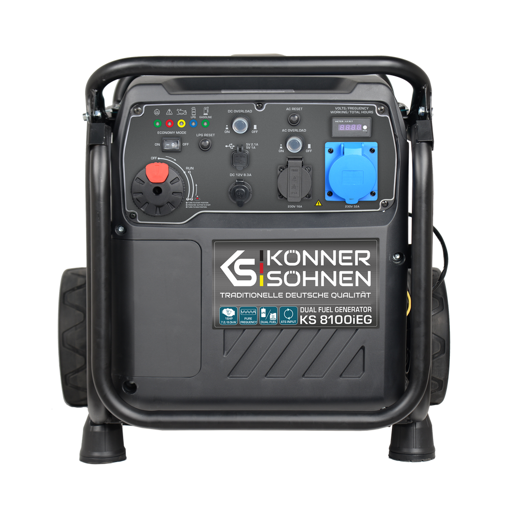 A Könner & Söhnen inverteres generátorok szállítórendszerrel vannak felszerelve a könnyű mozgatás érdekében. Két kerék és egy fogantyú, amely felemelkedik, amikor a generátort mozgatják, biztosítja a kényelmes szállítást és mobilitást.