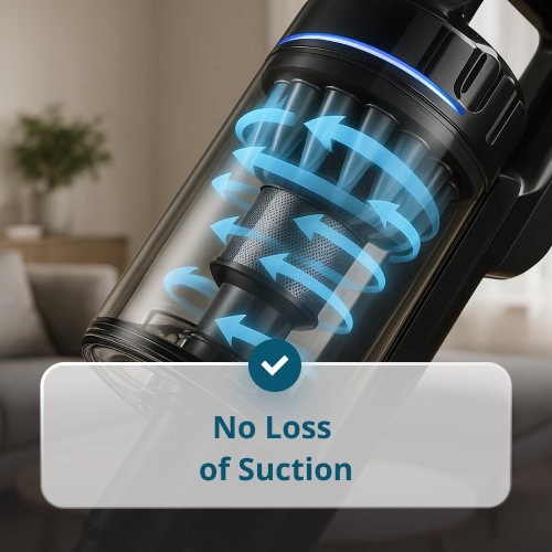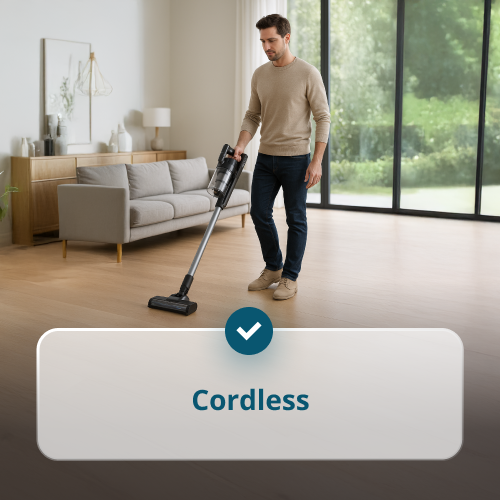 A porszívó egy újratölthető akkumulátorral működik, amely mobilitást biztosít a takarítás során a tápkábel korlátozása nélkül. Kompakt kézi porszívóvá alakítható, jelentősen kibővítve a használati körét.