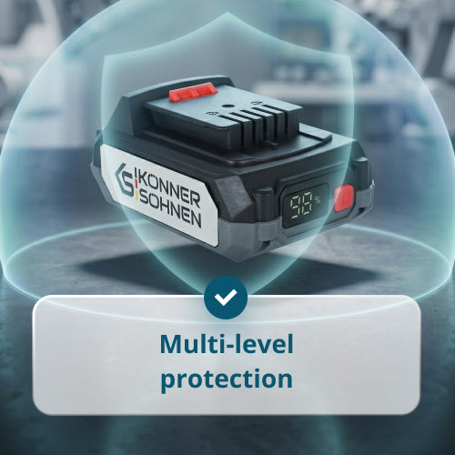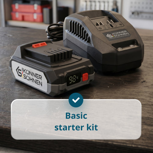The KS 20V2-1-KIT Starter kit is a practical solution for starting work with KS 20V cordless tools. The set includes a 2 Ah lithium-ion battery and a 2.4 A charger, ensuring a stable charging process.