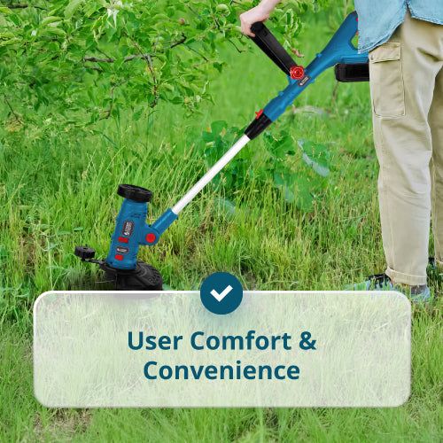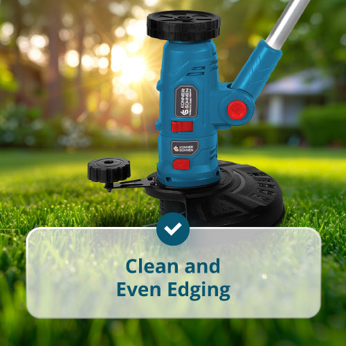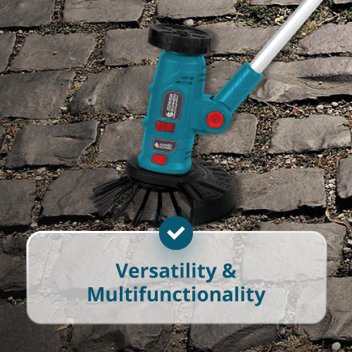 С регулируемия си моторен корпус и 3 сменяеми модула, този тример се справя с подрязване на трева, рязане на ръбове, почистване на пътеки и премахване на плевели между плочките.