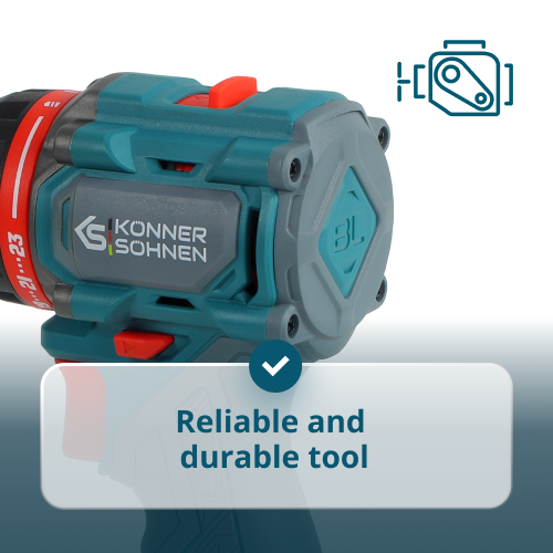 - Reliable and durable tool – the drill is equipped with a brushless motor that ensures long-lasting performance, stable power, and less heating during operation, while the reinforced metal gearbox housing protects the internal mechanisms from overload.