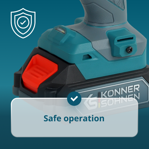 - Safe operation – the protection system includes overheating protection, overload protection, and over-discharge protection of the battery.