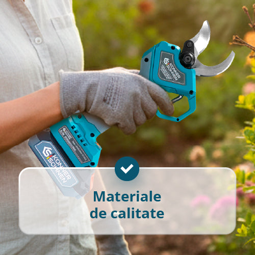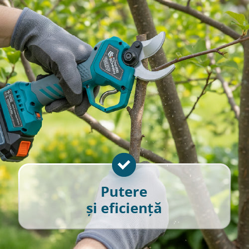 | Pachetul include | Foarfecă de grădină cu acumulator, Cheie tubulară, Cheie hexagonală 2,5/3/5 mm, Piatra de ascuțit, Sticluță pentru ulei, Instrucțiuni |