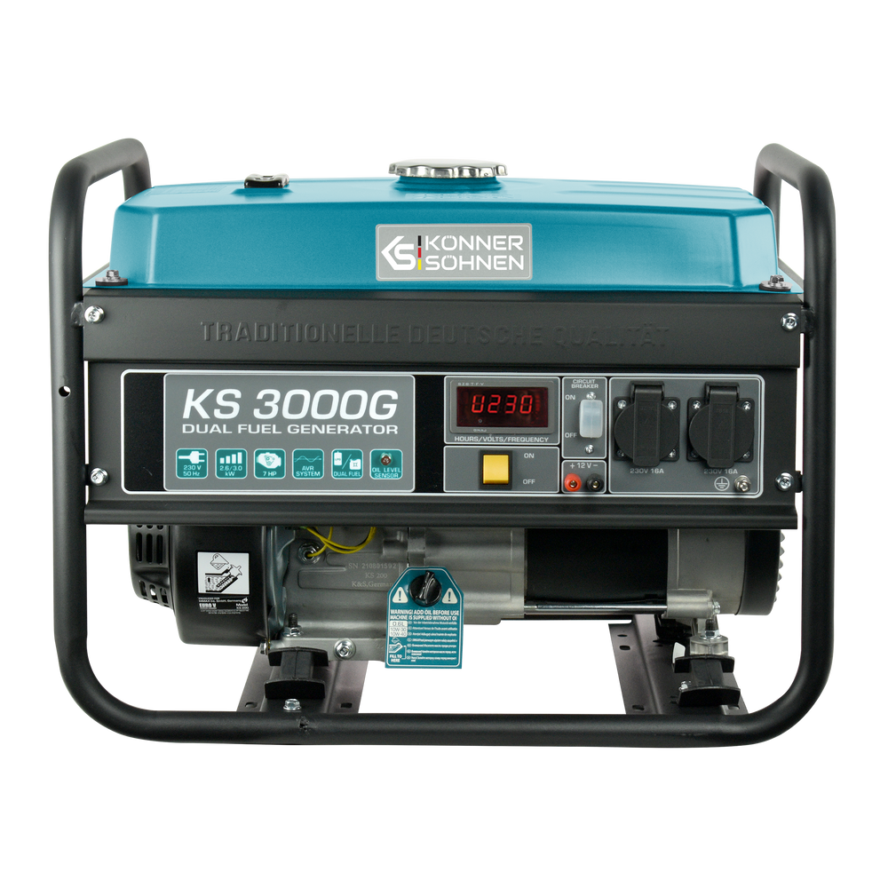 Generatoarele pe benzină și gaz lichefiat Könner & Söhnen din seria DUAL FUEL sunt printre cele mai apreciate de cumpărători datorită eficienței economice și impactului ecologic redus. Aceste generatoare pot funcționa atât cu benzină, cât și cu gaz lichefiat (propan-butan), iar utilizarea gazului contribuie la prelungirea duratei de viață a motorului. Toate accesoriile necesare pentru conectarea buteliei sunt incluse în set: generatorul este echipat cu un regulator de presiune zero și un furtun cu reductor de presiune. Pentru utilizare, este suficient să conectați generatorul la butelia de gaz. Generatorul nu este destinat racordării la rețeaua de gaz. Dacă este necesar, modelele pe gaz și benzină pot fi comutate ușor pe funcționarea cu benzină. Motorul monocilindric, în patru timpi, marca K&S, cu răcire pe aer, asigură o funcționare stabilă și fiabilă a generatorului.