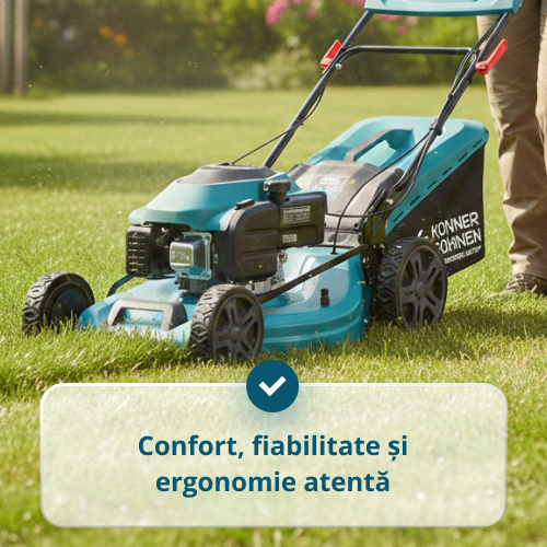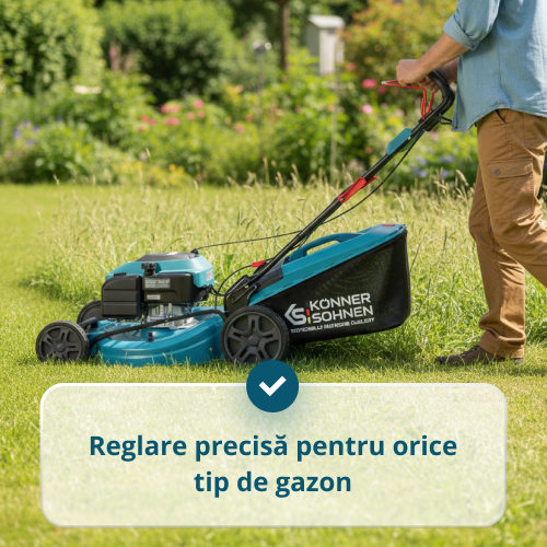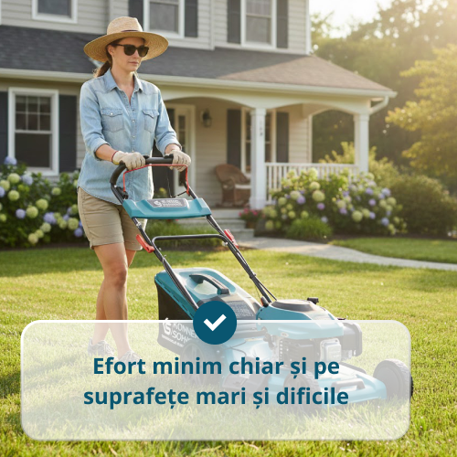 Funcția de tracțiune pe roți a mașinii de tuns iarba asigură o deplasare uniformă înainte fără a fi nevoie să fie împinsă manual, reducând semnificativ solicitarea mâinilor și a spatelui și facilitând cosirea în timpul lucrului îndelungat pe suprafețe mari și pe pante.