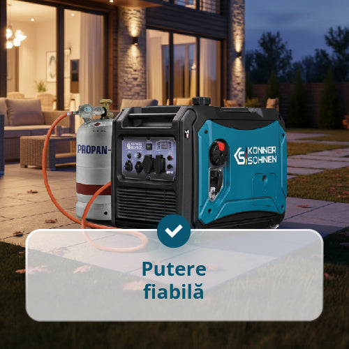 | Pachetul include | Generator, Ambalaj, Manual de utilizare, Cheie pentru bujie, Husă pentru accesorii, Șurubelniță PH2 6,0 mm, Husă pentru accesorii, Furtun de conectare la butelia de gaz cu reductor |