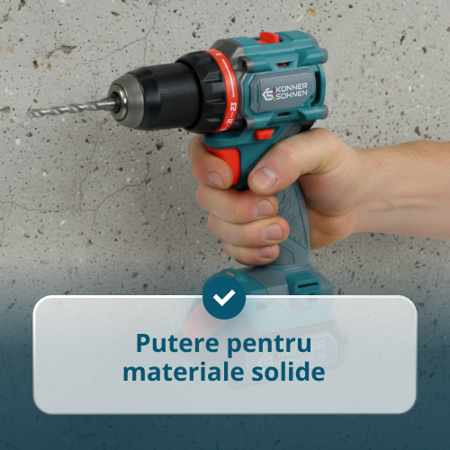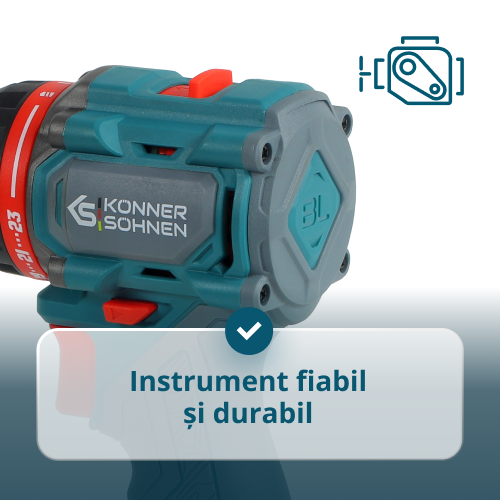 - Moduri universale și reglare precisă – unealta are 23 de poziții ale cuplului, care asigură reglarea precisă a forței de înșurubare pentru diferite materiale și tipuri de prinderi, și 3 moduri de lucru — găurire, înșurubare și găurire cu percuție, cu o frecvență de până la 28500 lov/min.