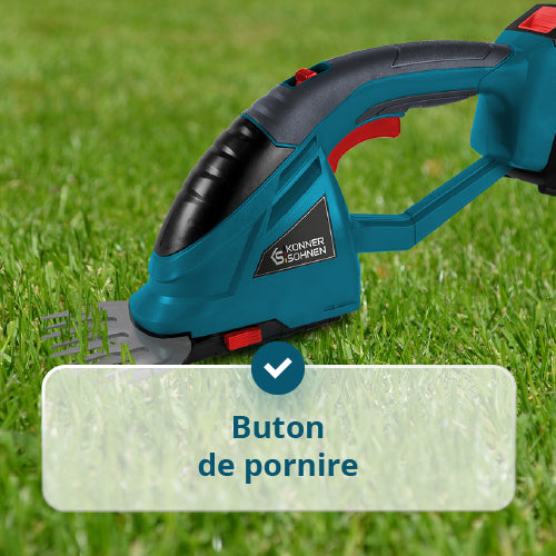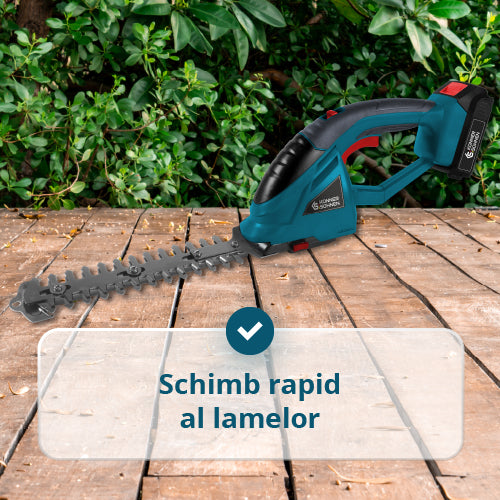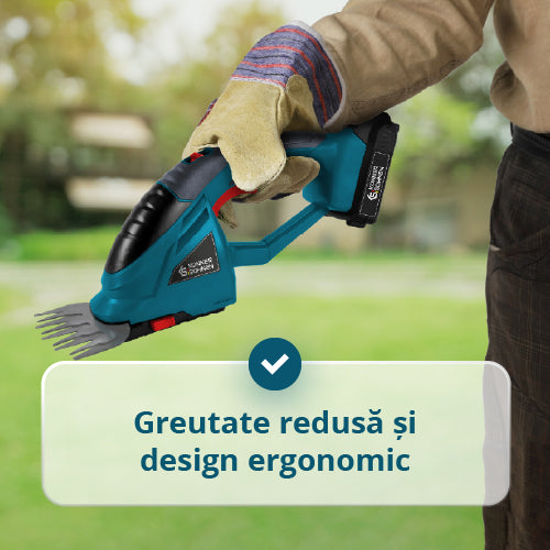 Pachetul include | Foarfecă, Lamă pentru arbuști, Lamă pentru iarbă, Cablu de încărcare USB/Type-C, Manual de utilizare, Comutator de siguranță, Stâlp de extensie telescopic |